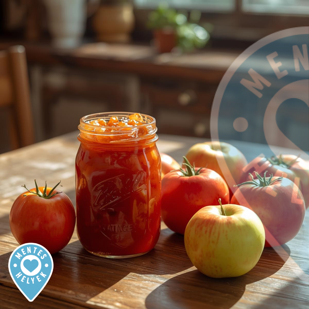 A hozzávalókat előkészítjük, hogy tempósan tudjunk haladni. A paradicsomot kisebb darabokra kockázzuk, az almát lereszeljük vagy aprítógépben apróra daraboljuk. A gyümölcsöket egy mély fazékba tesszük, hozzáadjuk az édesítőt és belekeverjük a zselésítőszert, valamint a fűszereket. Néhány perc alatt összeforraljuk. Ezután turmixoljuk. Aki keményebbre szeretné, a főzés végén a fél citrom levét adja hozzá. Az üvegekbe töltjük a lekvárt és 5 percre fejtetőre állítjuk. Kínálhatjuk friss kenyérrel, pirítóssal, de sült húsok mellé is kiváló!