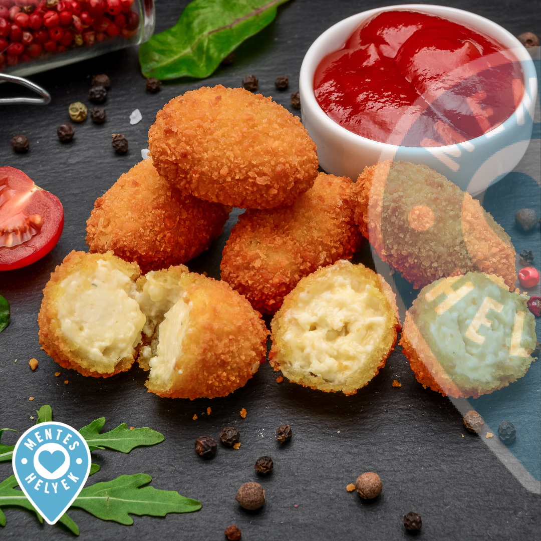 A darált csirkét sózzuk, borsozzuk, hozzáadjuk a fokhagymát, majd összegyúrjuk, és gömböket formázunk belőle. A sajtot lereszeljük, és kis golyókat formázunk ezekből is, akkorákat, amit a húsba tudunk majd tölteni. A húsgombócokat kilapítjuk, majd a közepébe rakjuk a sajtgolyókat, és jól körbevonjuk a hússal. Ezután a húsgolyókat bepanírozzuk: először a rizslisztbe forgatjuk, majd a felvert tojásba, végül a gluténmentes zsemlemorzsába. Bő, forró olajban 5 perc alatt készre sütjük. 😉