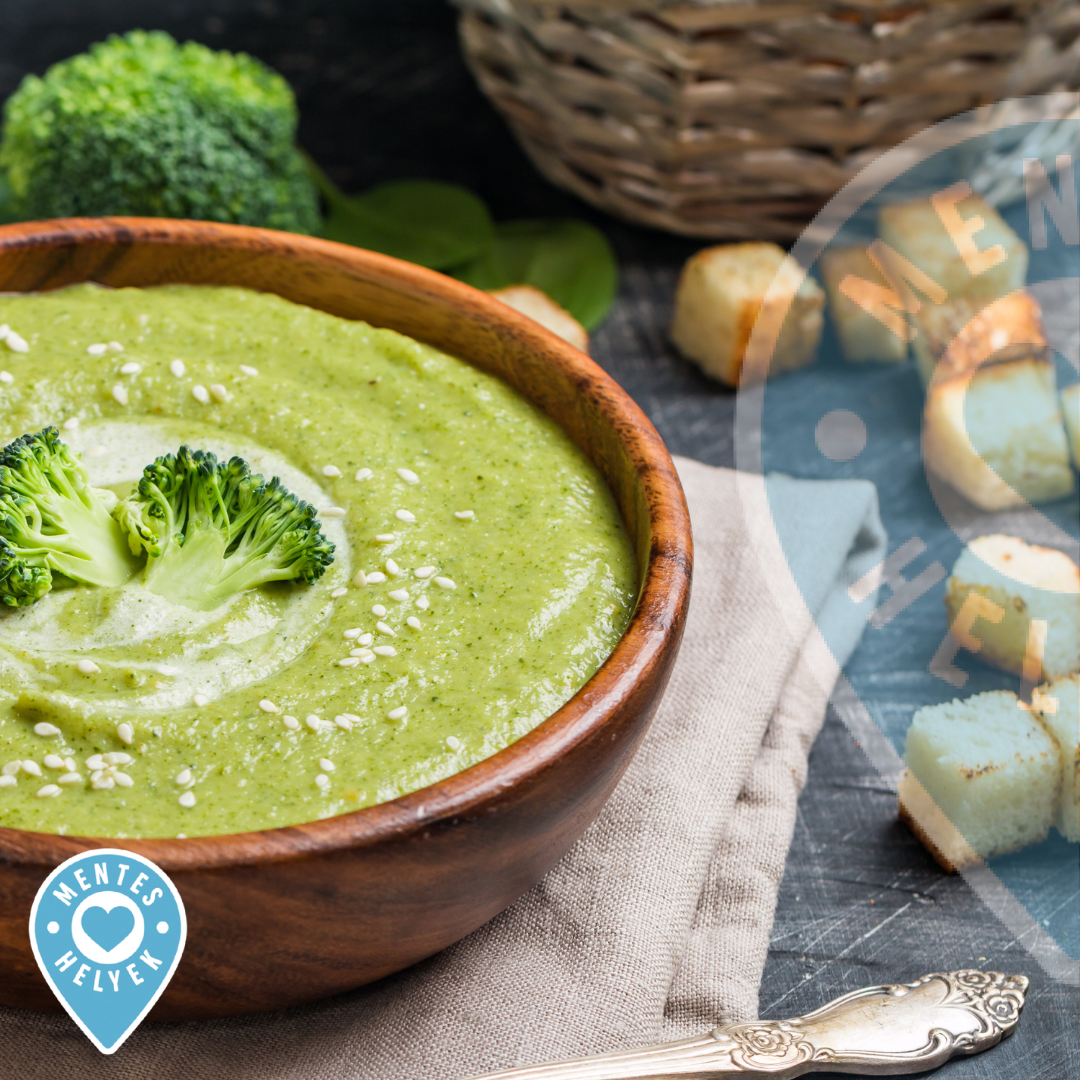 A hagymát és a fokhagymát kevés olajon dinszteljük meg, adjuk hozzá a brokkolit és a kockára vágott burgonyát, majd öntsük fel annyi vízzel vagy alaplével, amennyi épp ellepi. Főzzük puhára a zöldségeket, fűszerezzük sóval, borssal és szerecsendióval, végül turmixoljuk teljesen krémesre (ha sűrű, pici vízzel hígíthatjuk, de a krumplitól tejszín nélkül is selymes lesz).